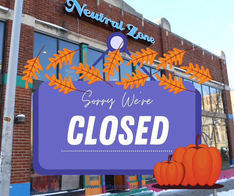 NZ Closed for Thanksgiving Holiday Wednesday, November 23, 2022 12:00 PM Friday, November 25, 2022 1:00 PM Neutral Zone 310 E Washington St Ann Arbor United States (map) Google Calendar ICS Neutral Zone will be closed for Thanksgiving from Weds, Nov 23-Fri, Nov 25th. Have a wonderful Thanksgiving, we are so grateful for our teens and the amazing community that supports them. Thank you!