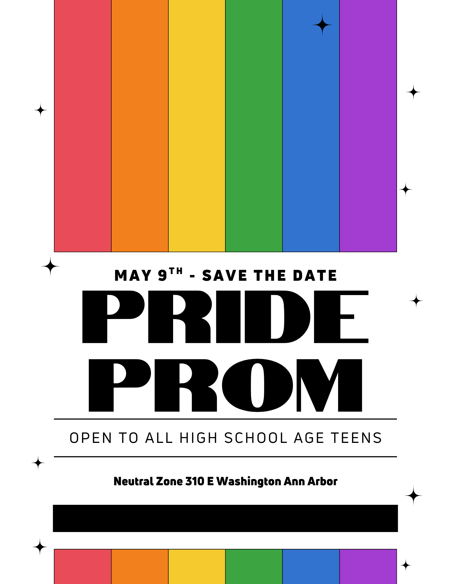 Save the date for Pride Prom! Neutral Zone’s Pride Prom will be Saturday, May 9th at NZ. Time TBD. Theme and details coming soon.